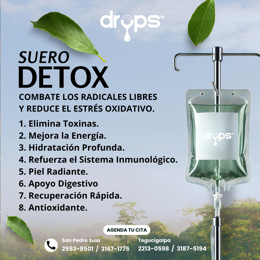 Proporciona reposición de líquidos, electrolitos, vitaminas y antioxidantes para ayudar al cuerpo a reconstruirse y deshacerse de las toxinas no deseadas.