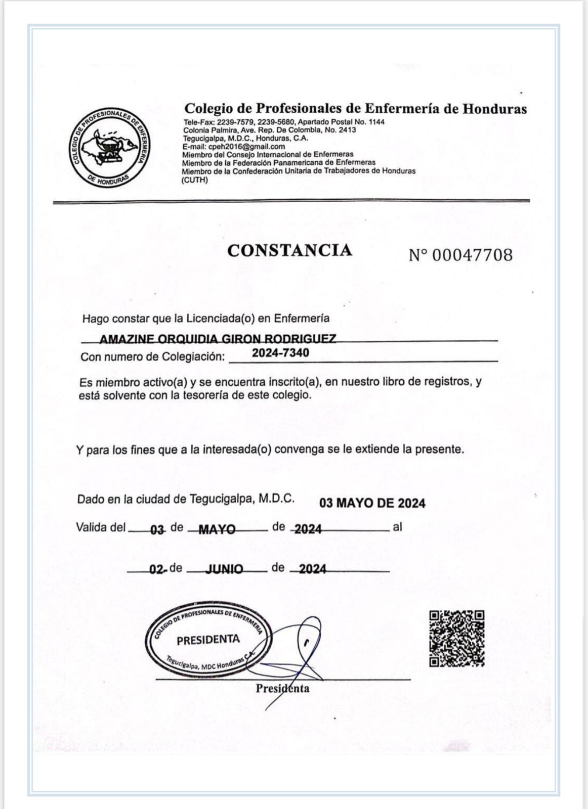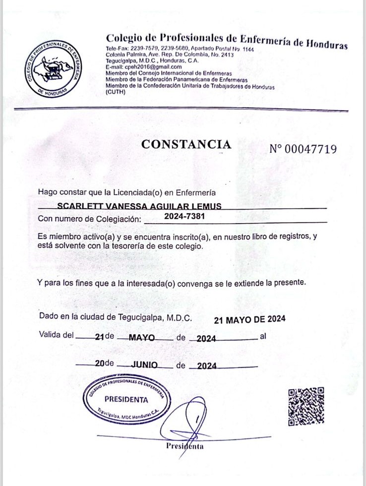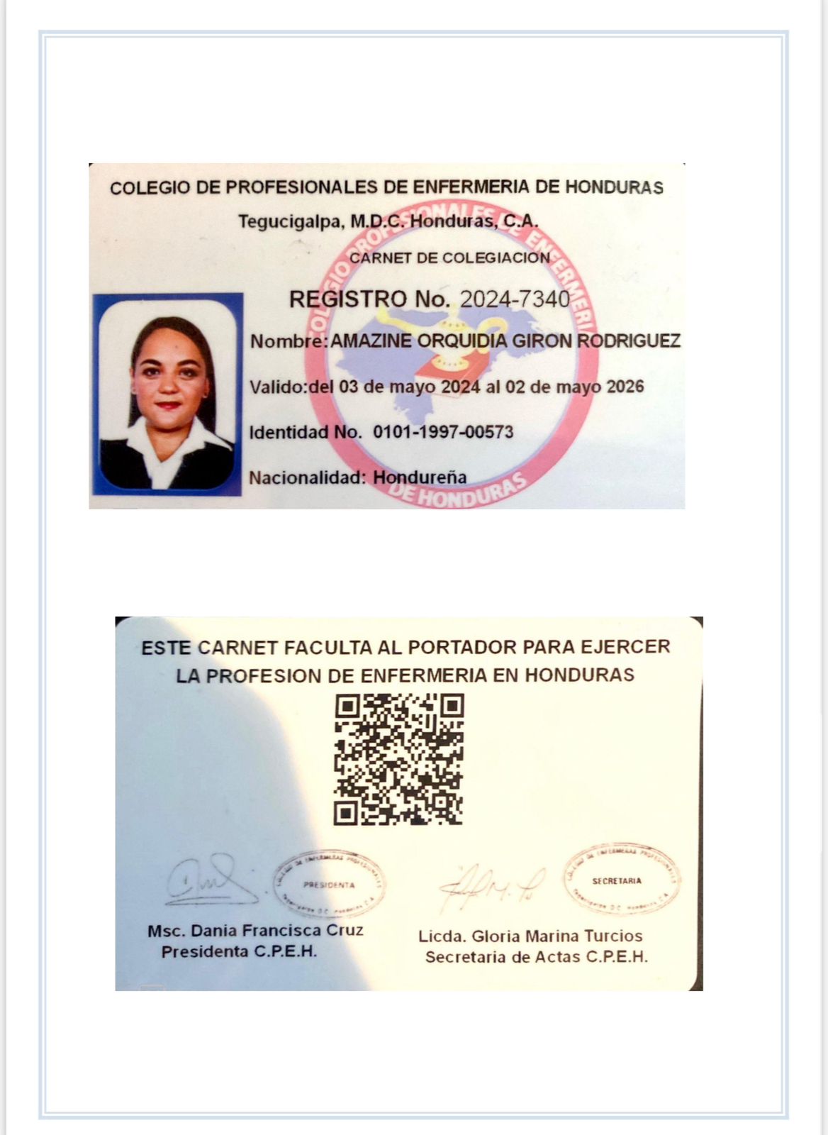 Gabriel Reyes Doctor (current validation) Unicah/TecMon (México)/Enf Cefae (avalado por SESAL) /auxF Cefae (avalado por SESAL) /InstrumenQ/Sueroterapia Issap (México) /medicinapreventiva UNAH /Nutrienteralyparenteral